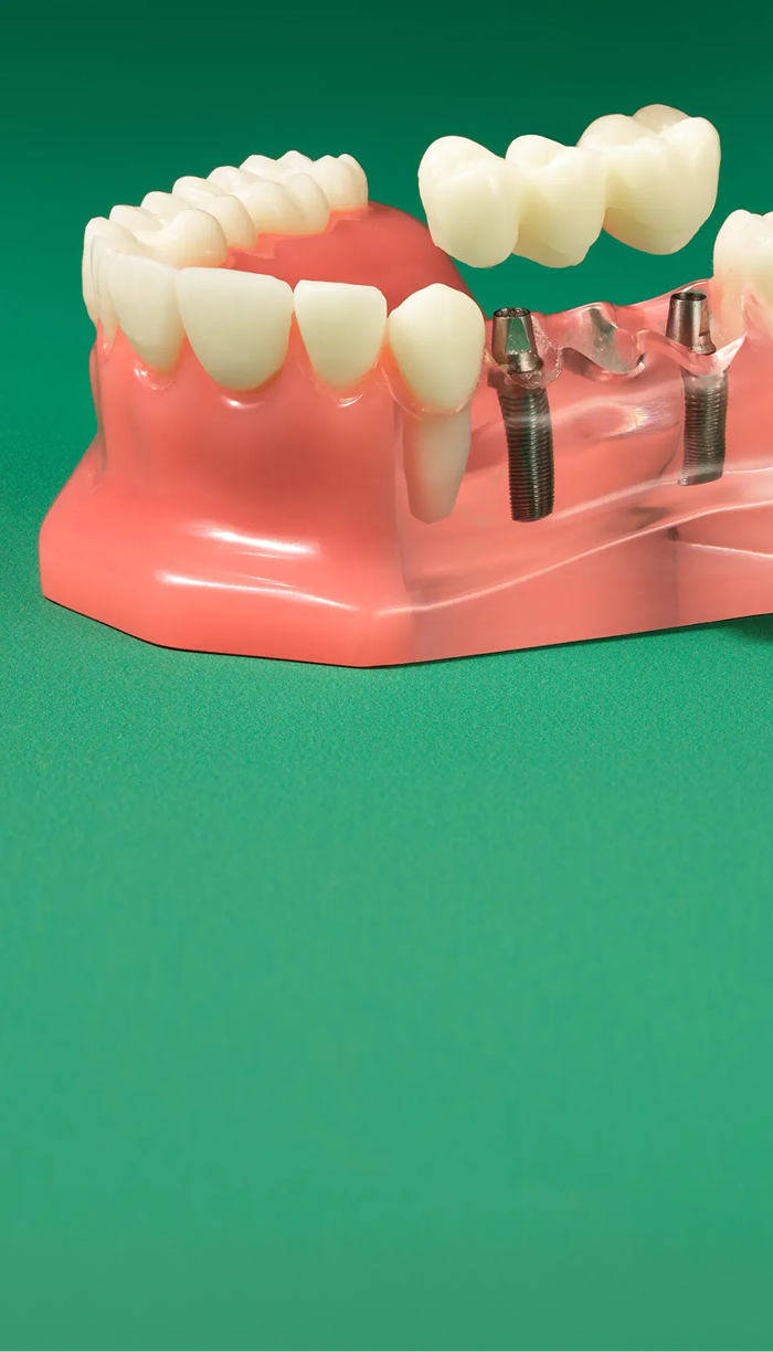 A 3-tooth implant bridge uses two dental implants to support a bridge that replaces three missing teeth. The full process typically includes healing time and final restoration. Your Aspen Dental provider will evaluate your needs, review treatment steps and help you understand what to expect.